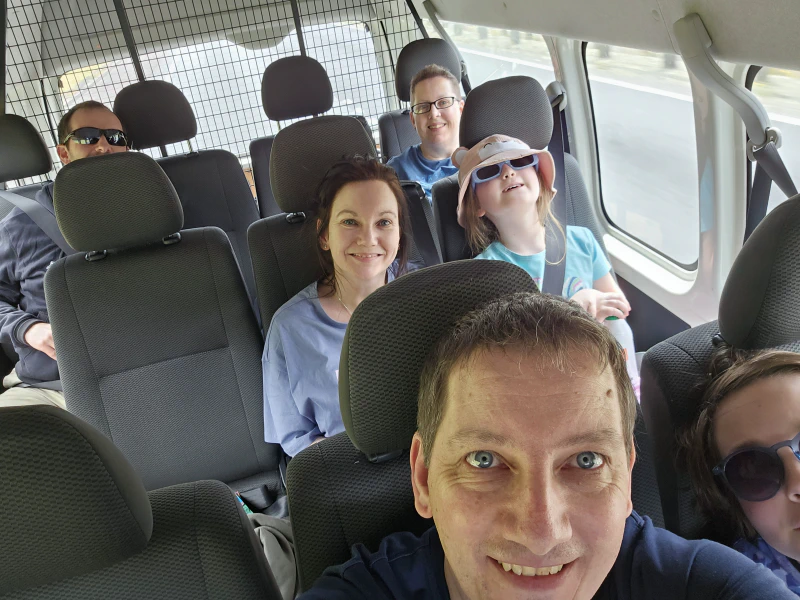 My dad left a WhatsApp message to say to meet them in the pickup zone, but I had no idea where this was in relation to the arrivals area so I scanned for signs as I walked into the hall. I was clearly a bit oblivious as I missed the calls of Jo, Ems and Eddie, who were waiting for me on the other side of the barrier! I was so happy to see them after the long journey and really chuffed that they came in to meet me. We made our way out to the pickup zone and waited for Dad to circle round and pick us up. It was great to finally get into fresh air, and even better that it was warm and pleasant out.